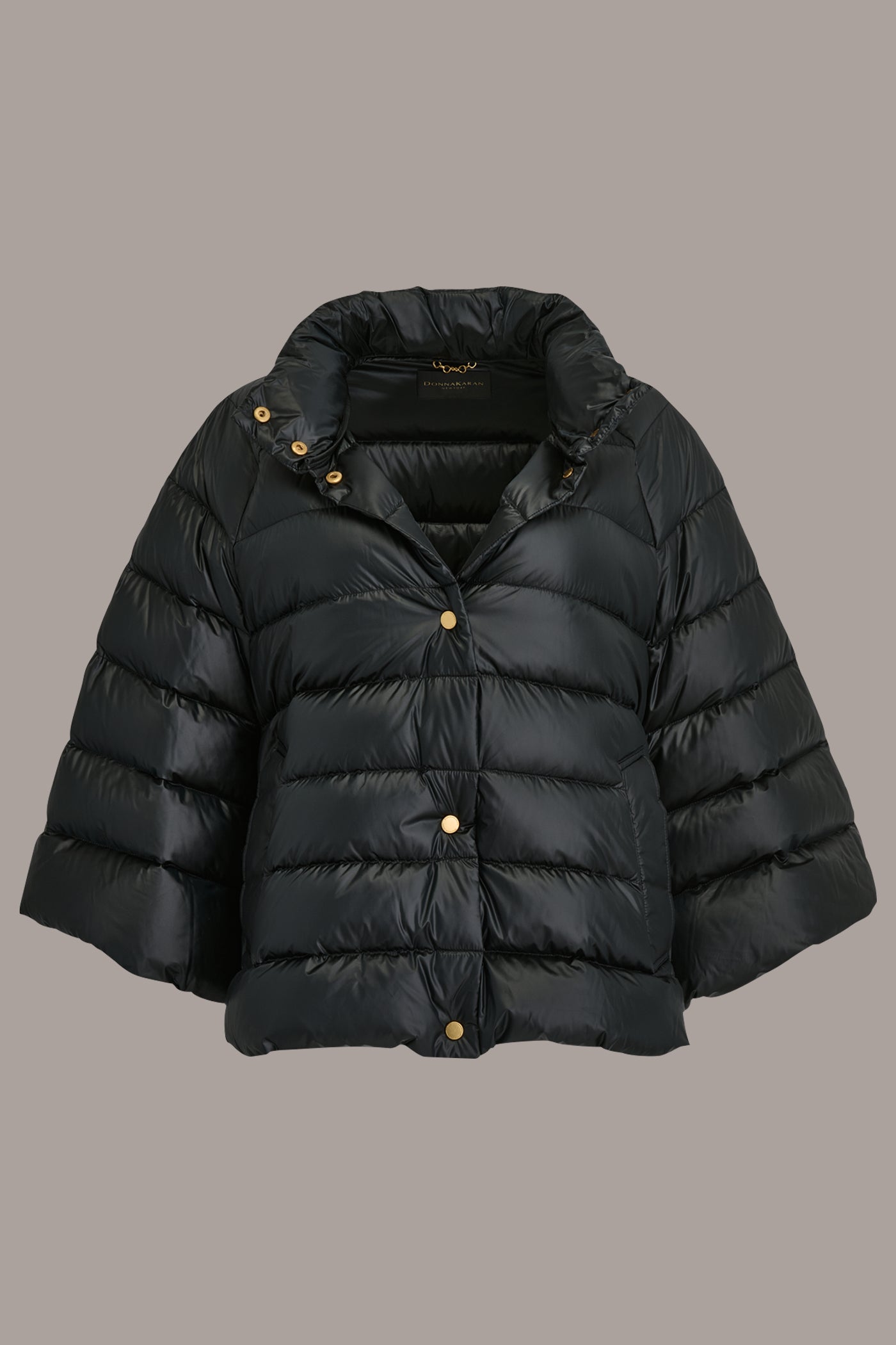 A fresh take on your favorite puffer coat. Updated in a cape-inspired silhouette, this style features a stand collar and sleek buttons down the front.