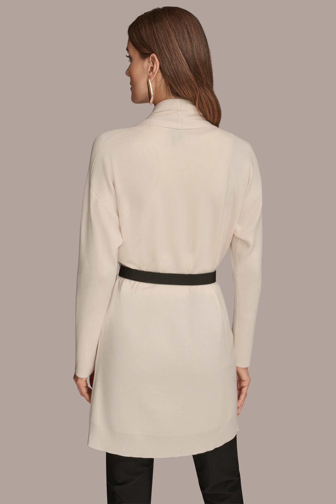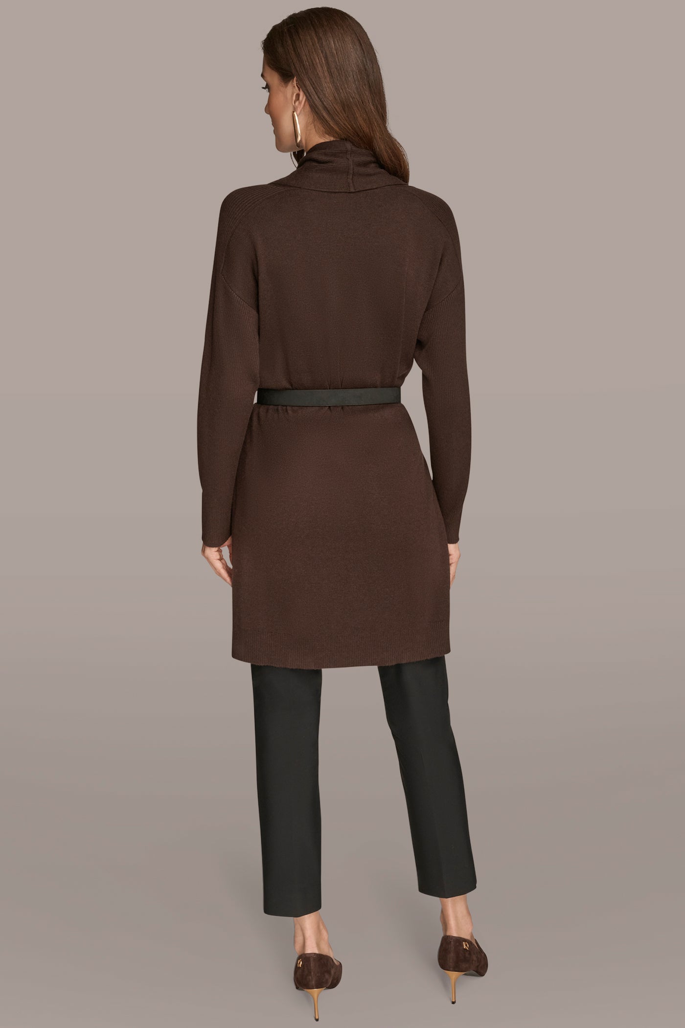 V NECK SHEATH DRESS WITH SLIT AND BELT