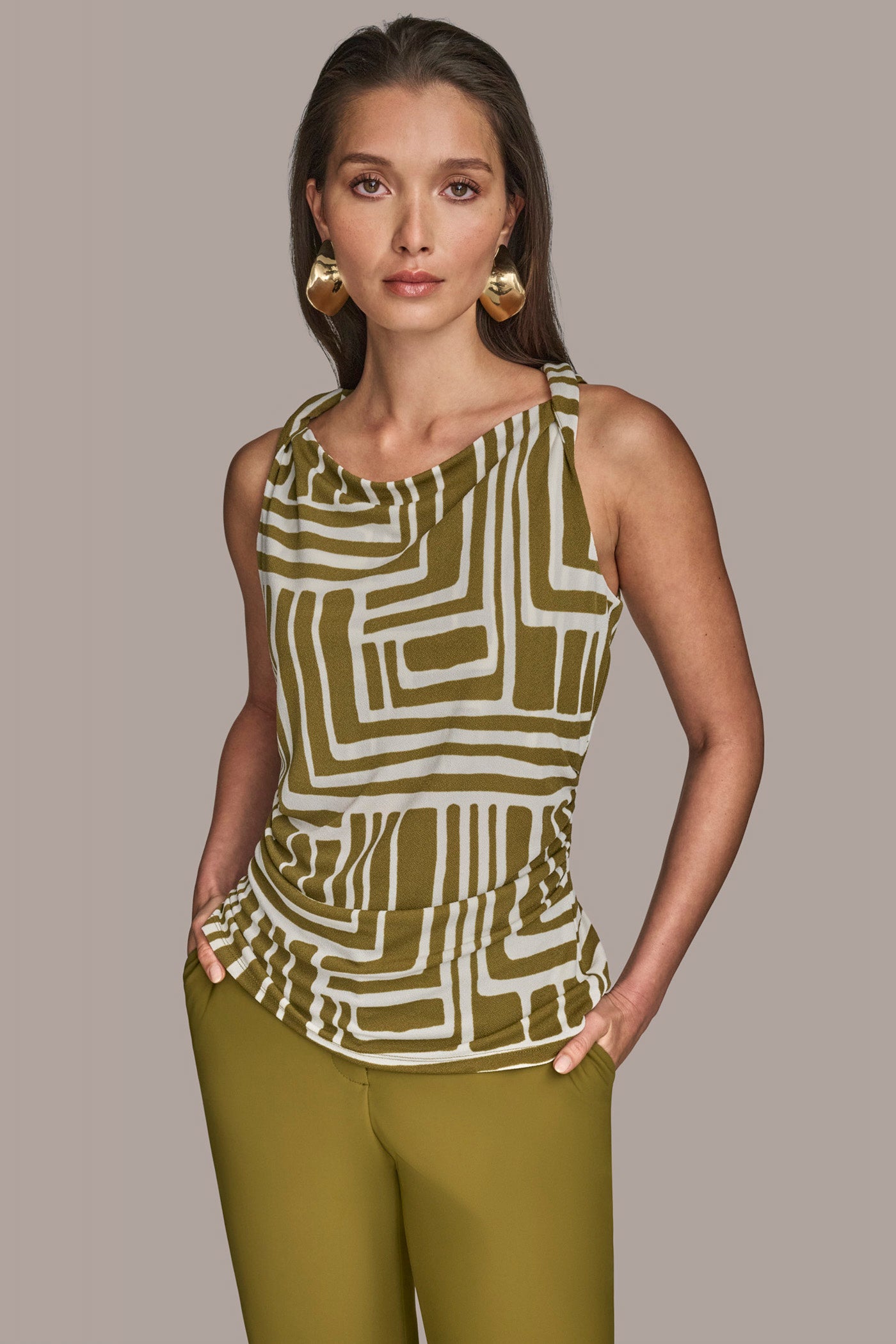 V NECK TOP WITH HARDWARE AND RUCHED DETAIL