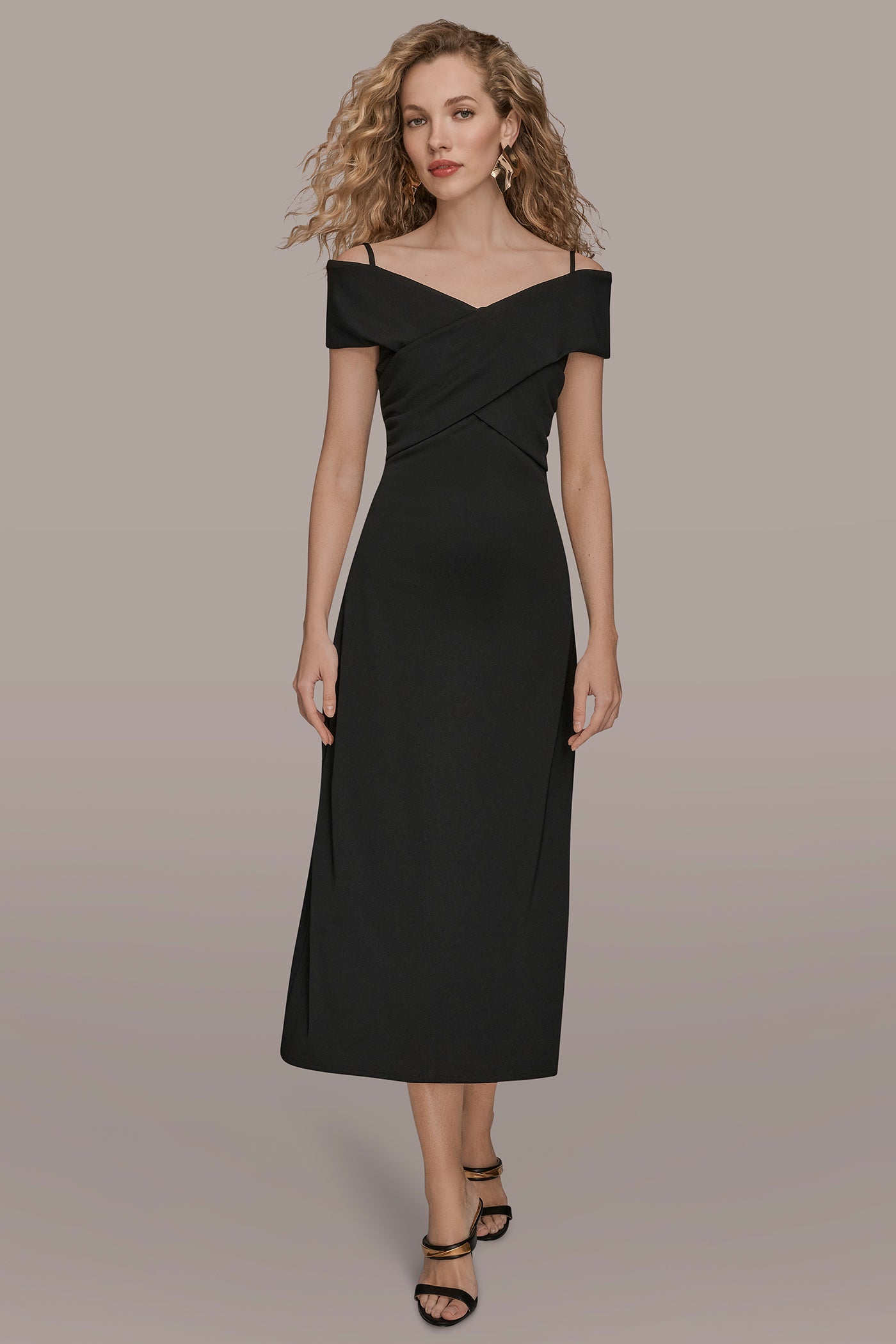 SLEEVELESS FAUX WRAP MIDI SHEATH