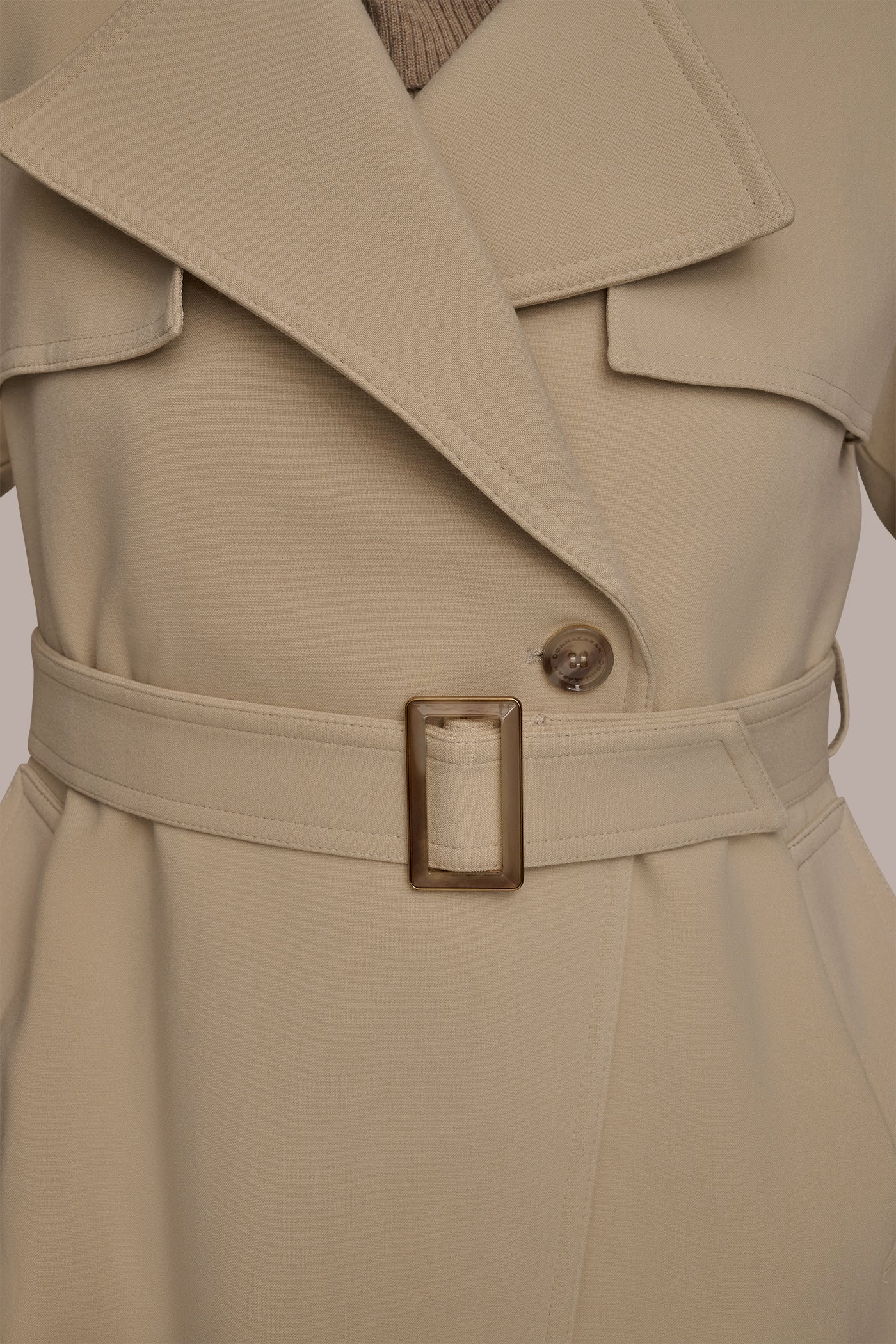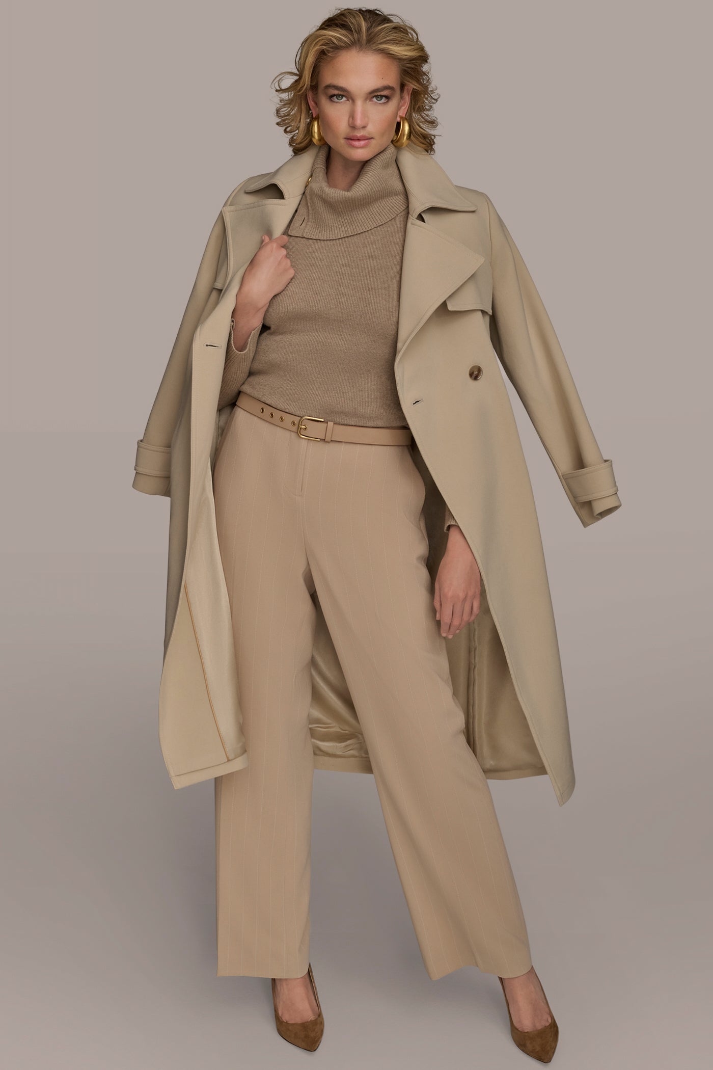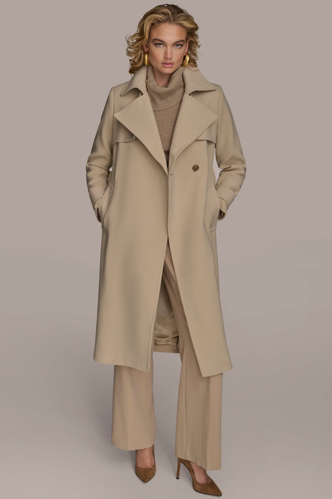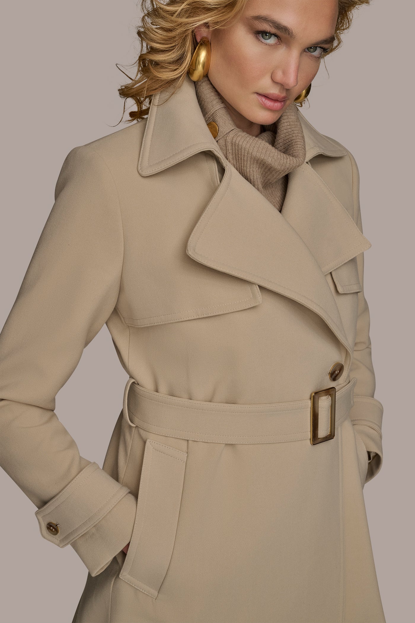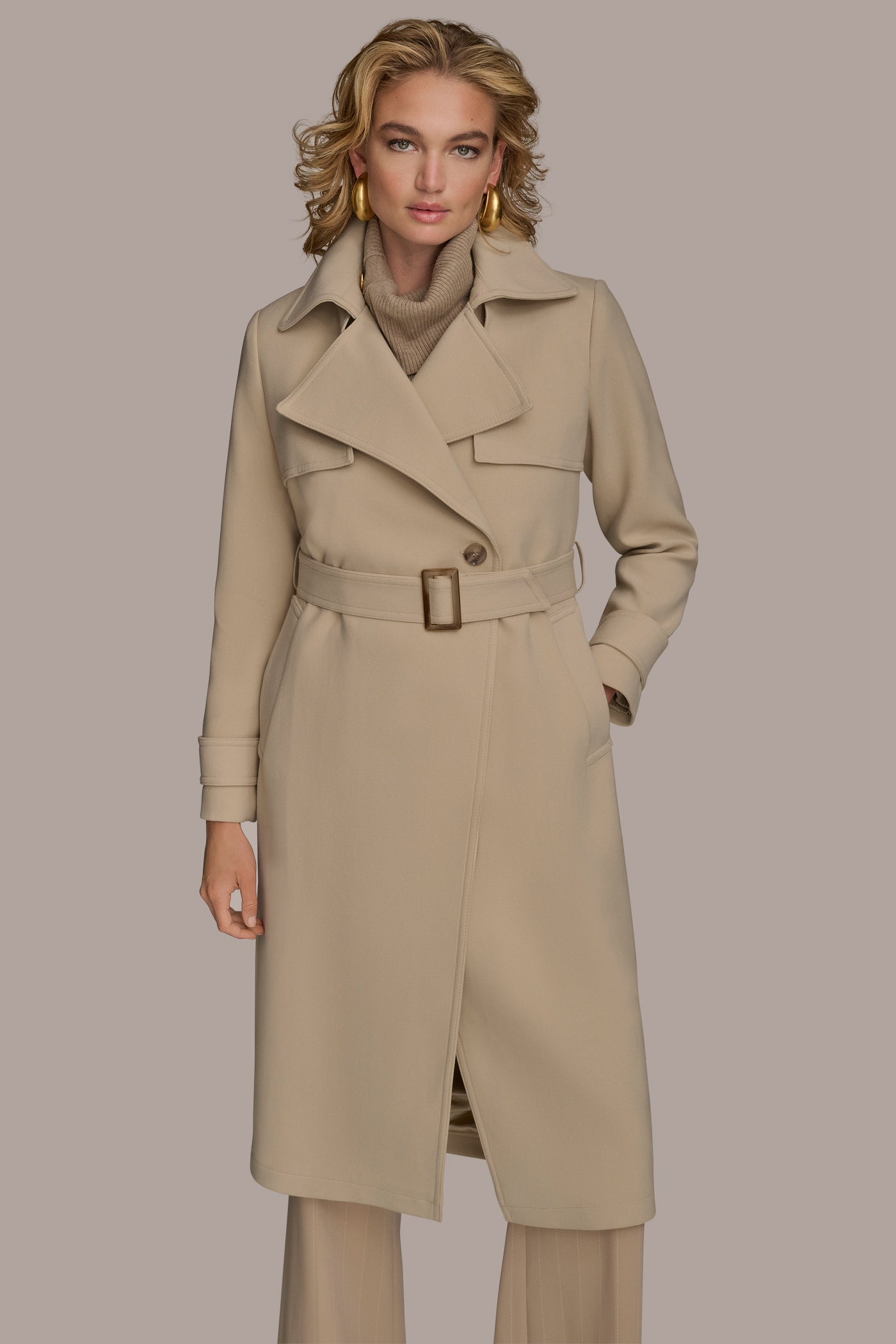 A polished wardrobe classic. This trench coat is crafted with plenty of classic details, like a notch collar, storm flap, and belt at the waist.