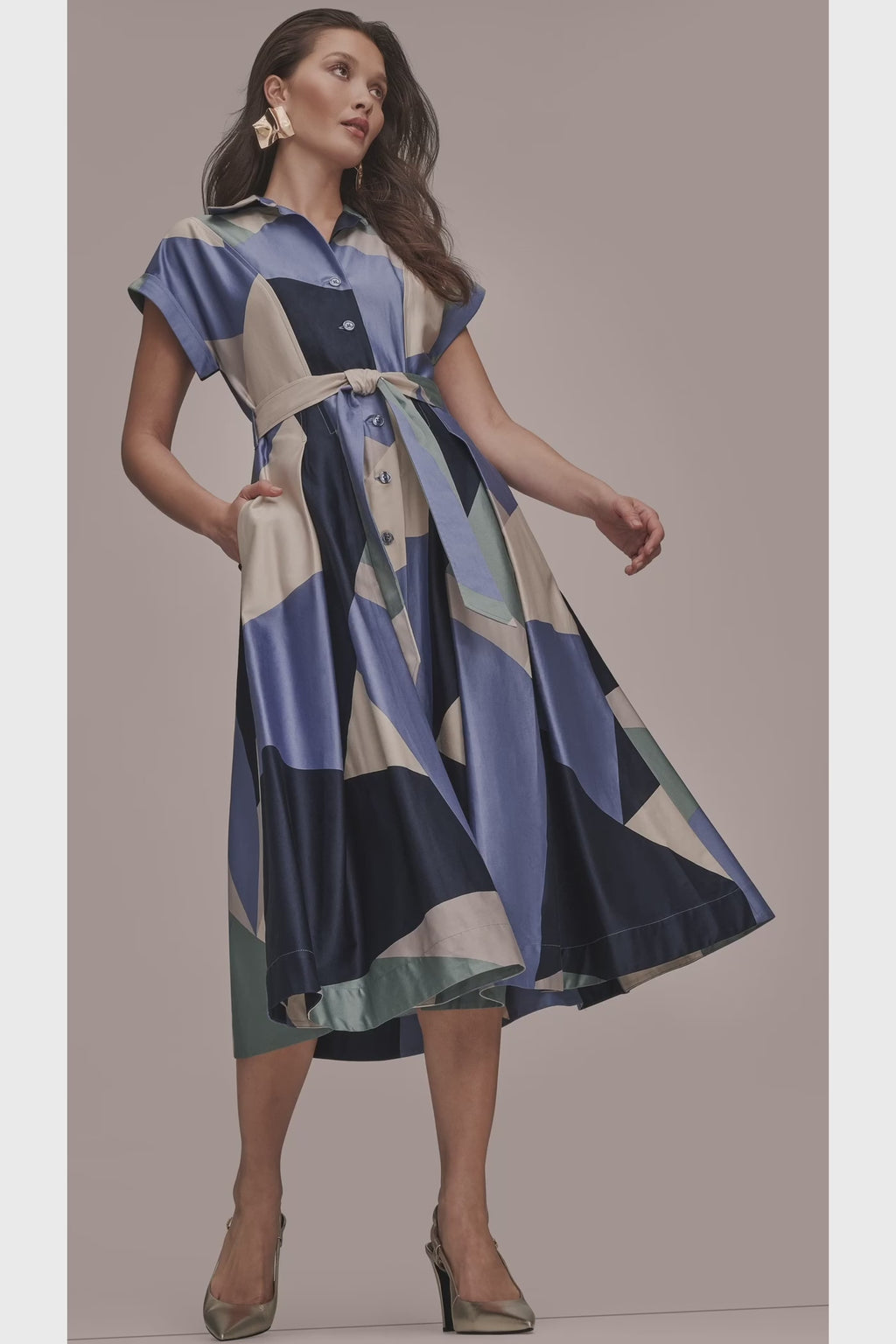 Belt shown in campaign imagery is for editorial styling only; midi dress is a tie belt.