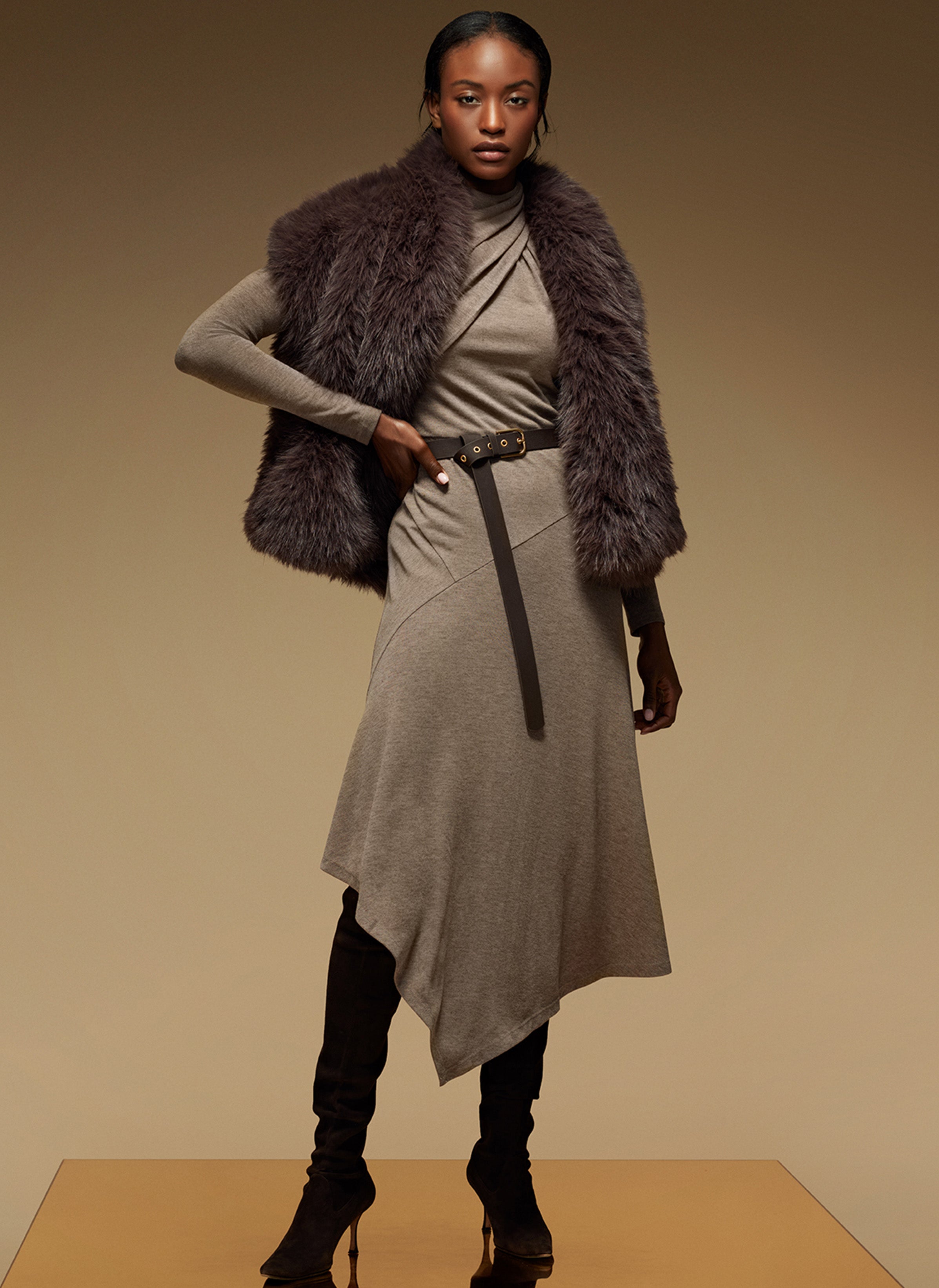 WRAP-EFFECT ASYMMETRIC MIDI DRESS | View 2 | Dresses & Jumpsuits