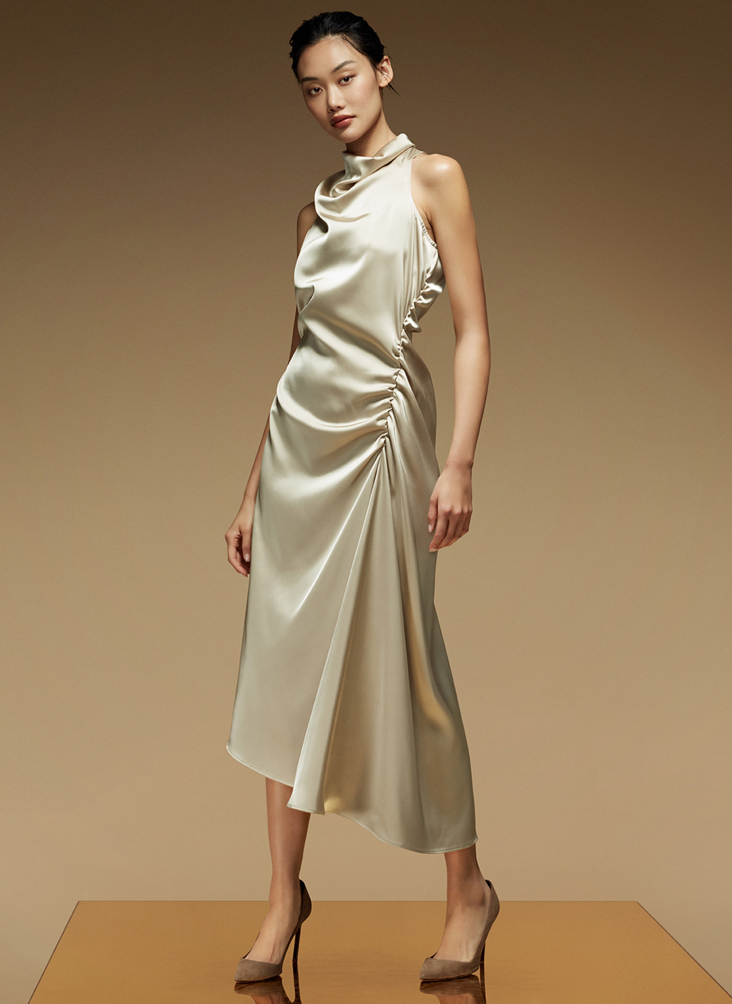 ASYMMETRICAL NECK FRONT DRAPED GOWN
