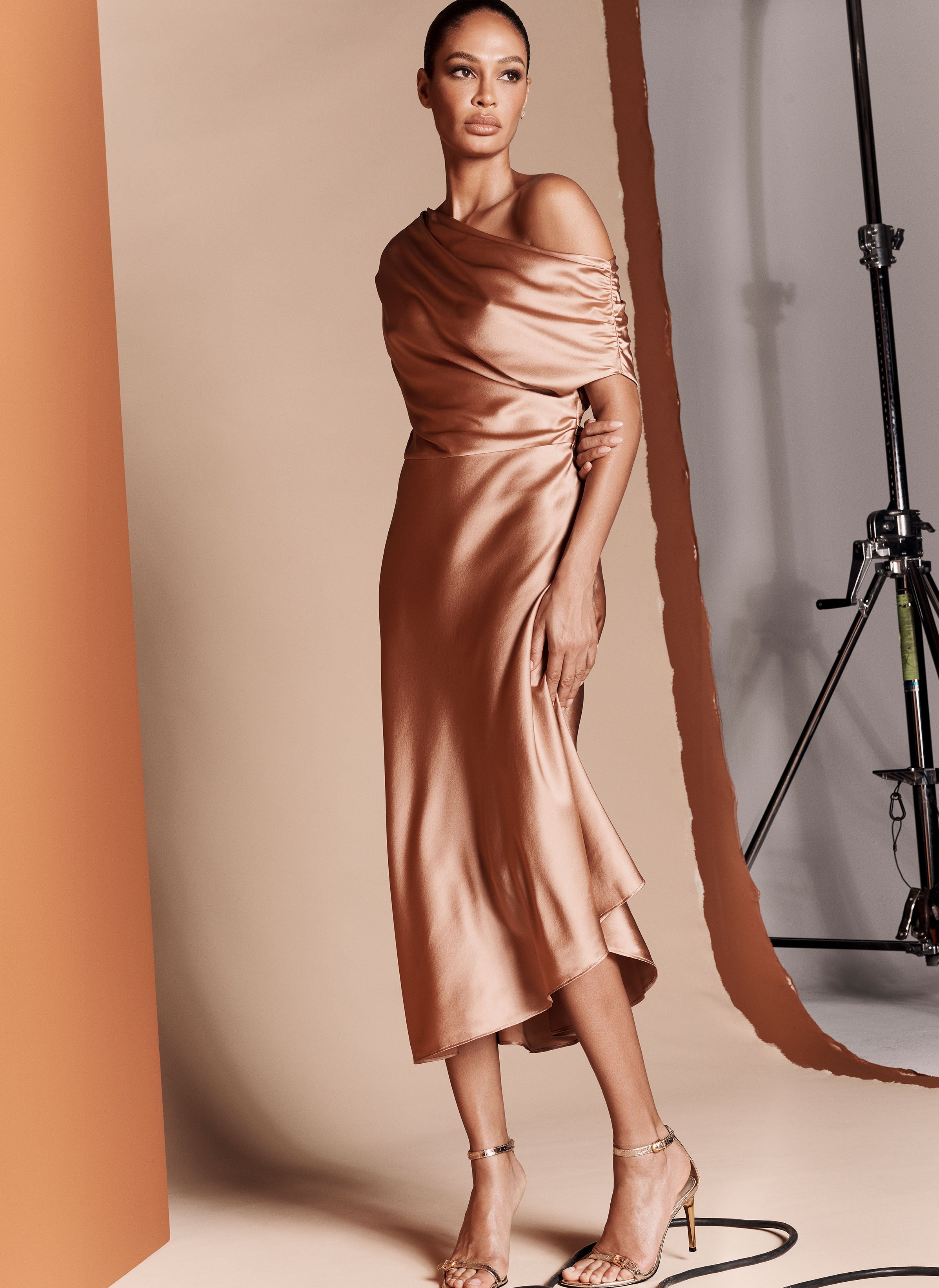 SILK-CHARMEUSE MIDI A-LINE DRESS