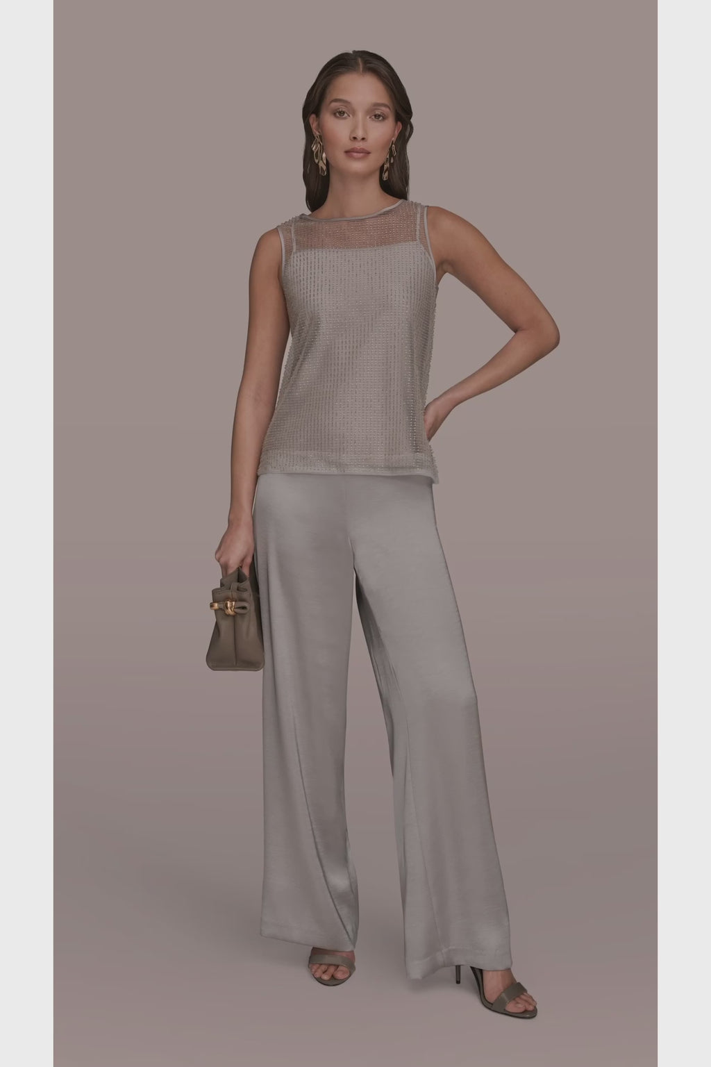 - Sleeveless Scoop-Neck Layered Beaded Blouse