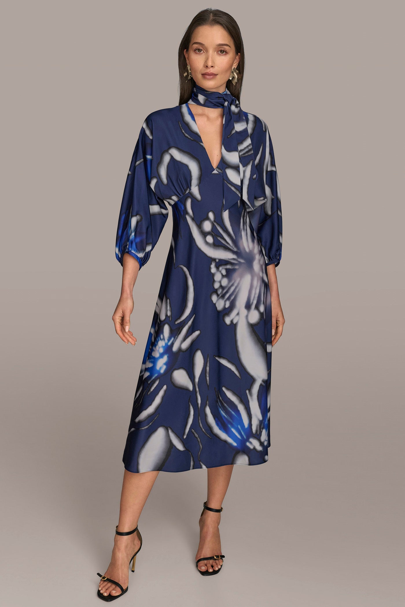 PLUS SIZE VNECK A LINE MIDI DRESS