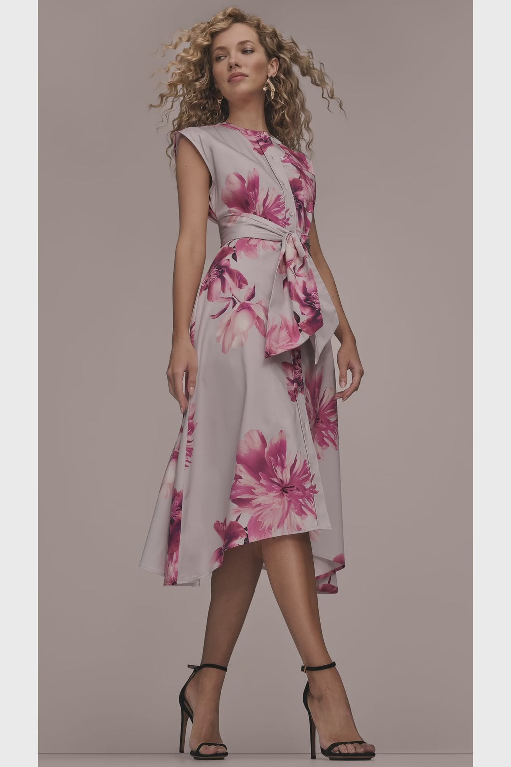 PRINT CAP SLEEVE DRESS WITH WIDE TIE WAIST