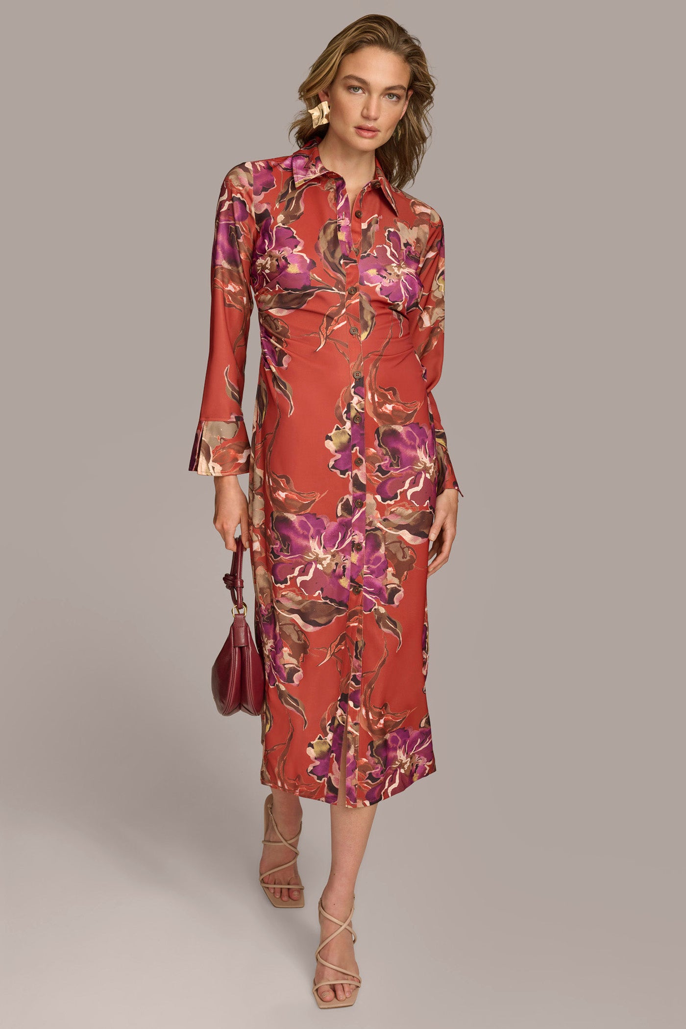 CHIFFON SHIRT DRESS MIDI WITH BELT