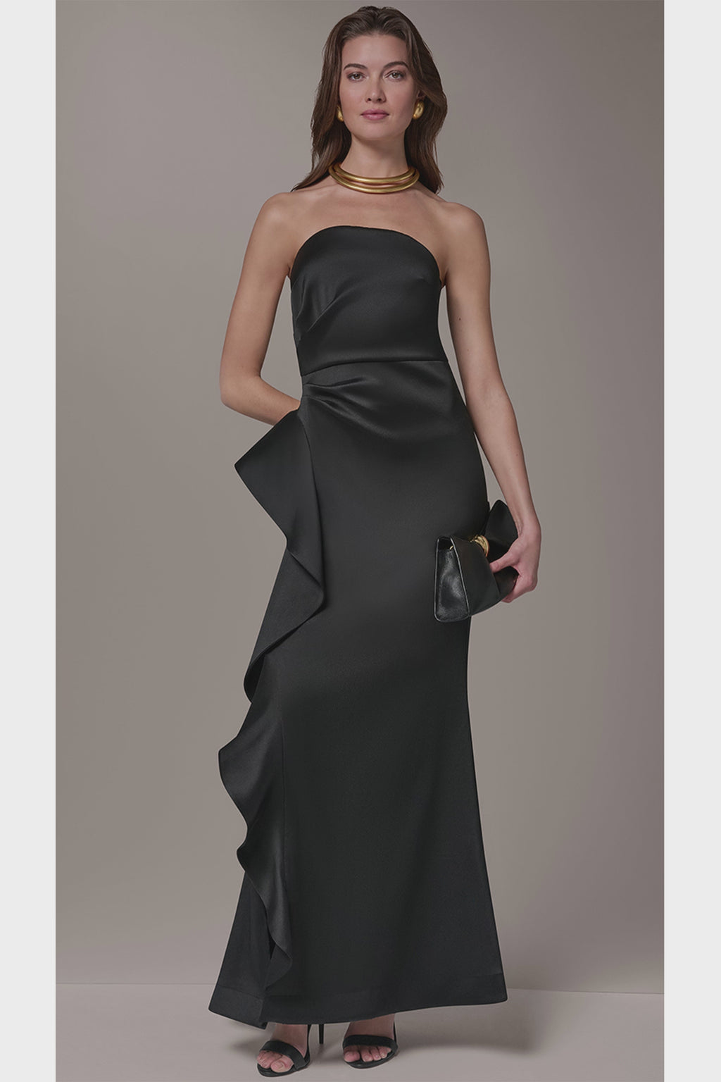 - TAFFETA STRAPLESS RUFFLE GOWN