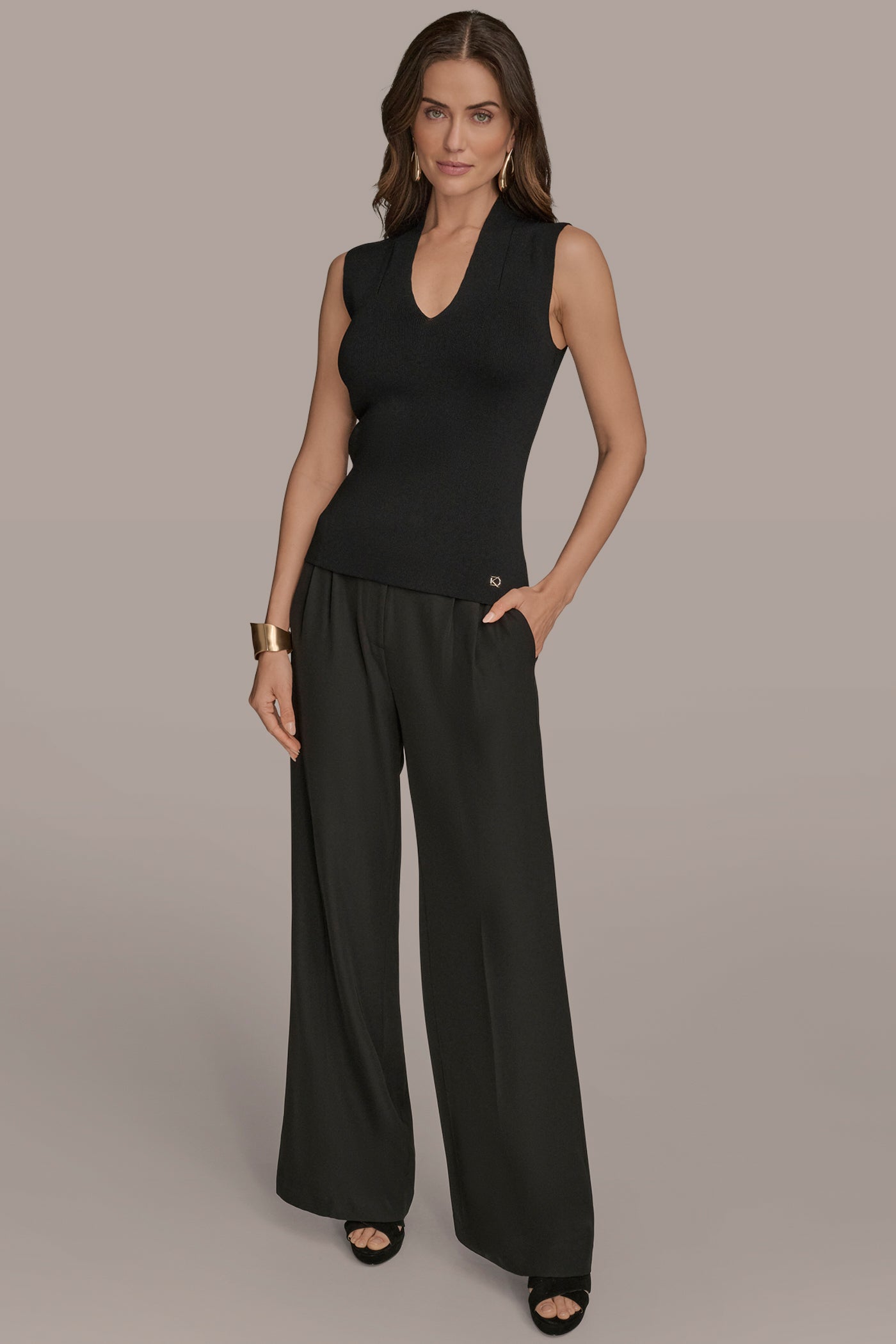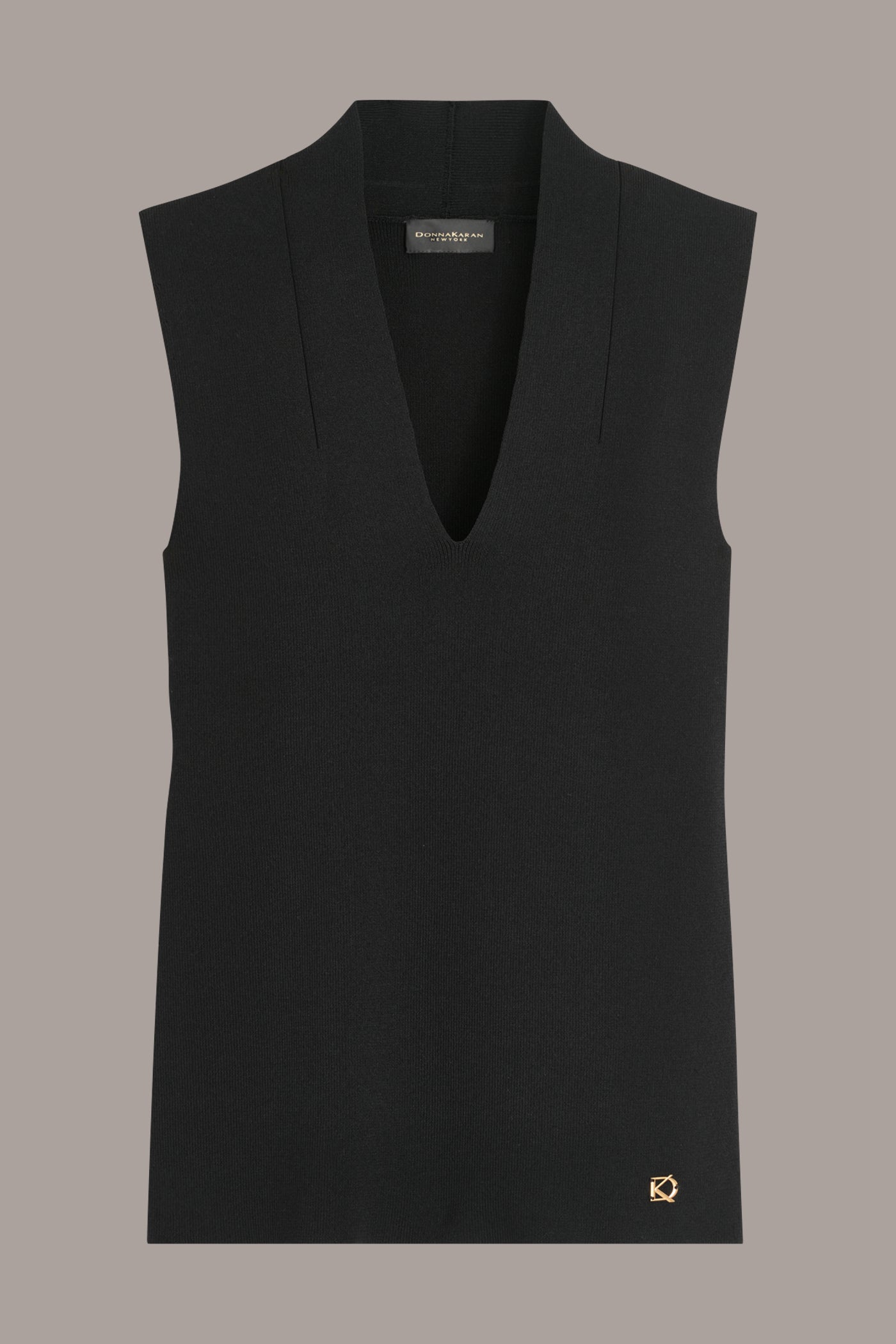- Sleeveless High V-Neck Seamed Shoulder Sweater