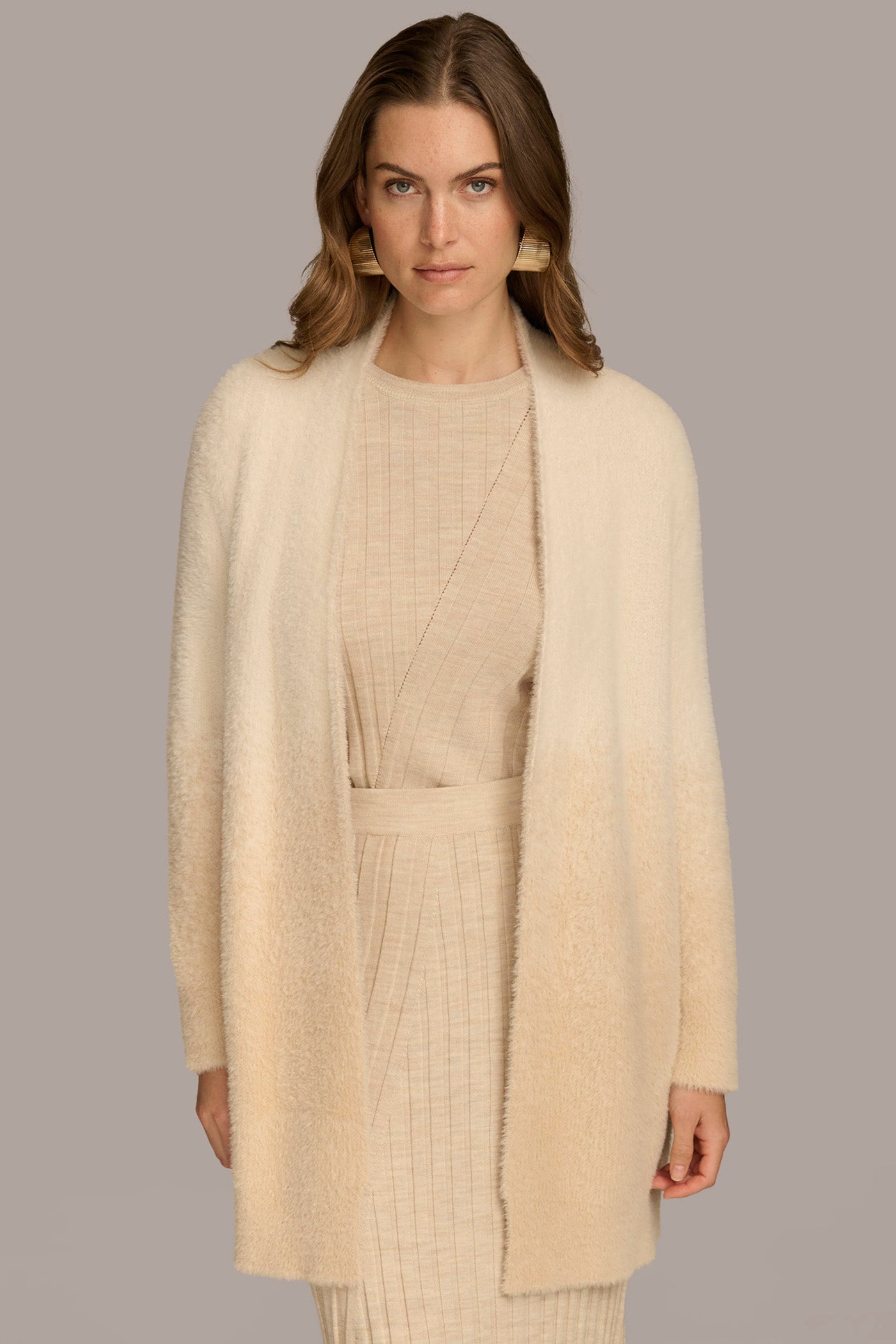 FAUX-LEATHER PANELED DRAPED OPEN-FRONT JACKET