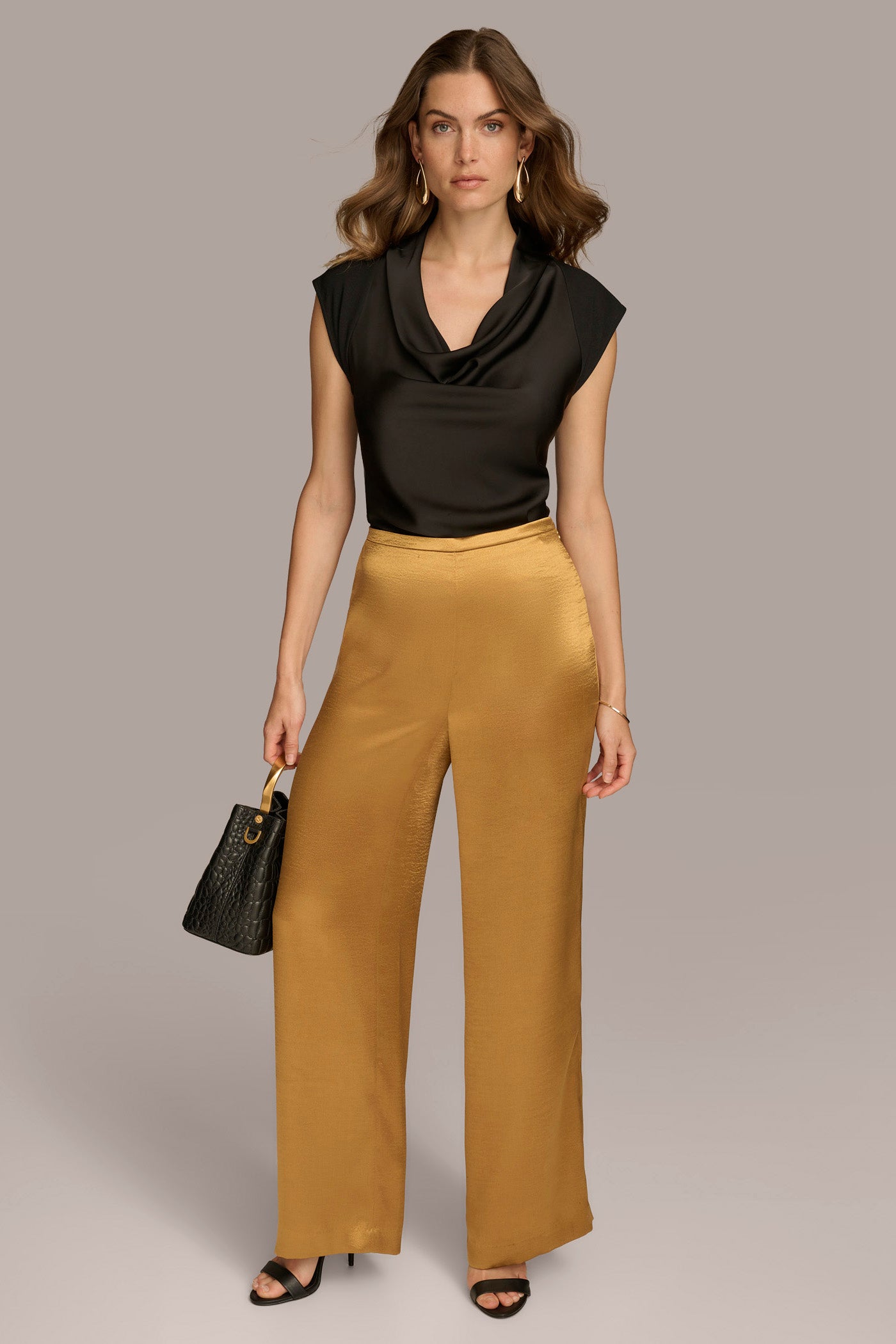 BELTED ASYMMETRIC COWL-NECK MIDI SHEATH