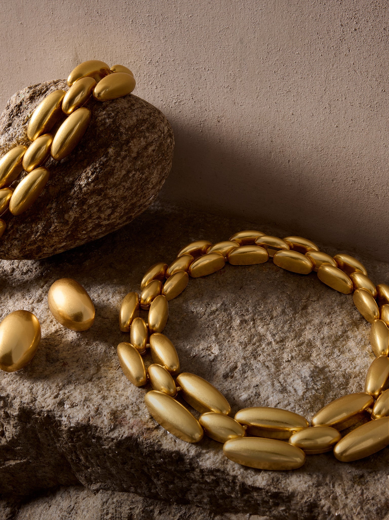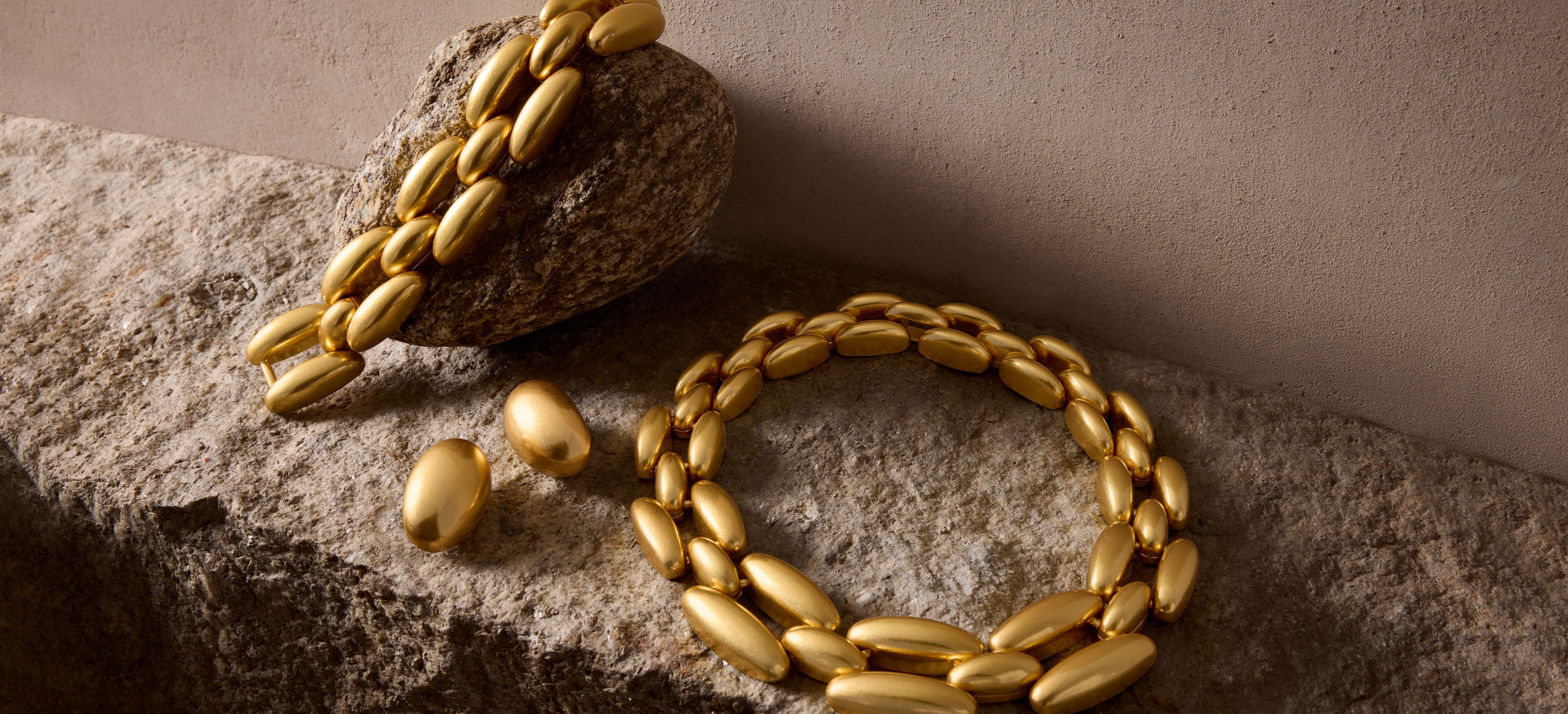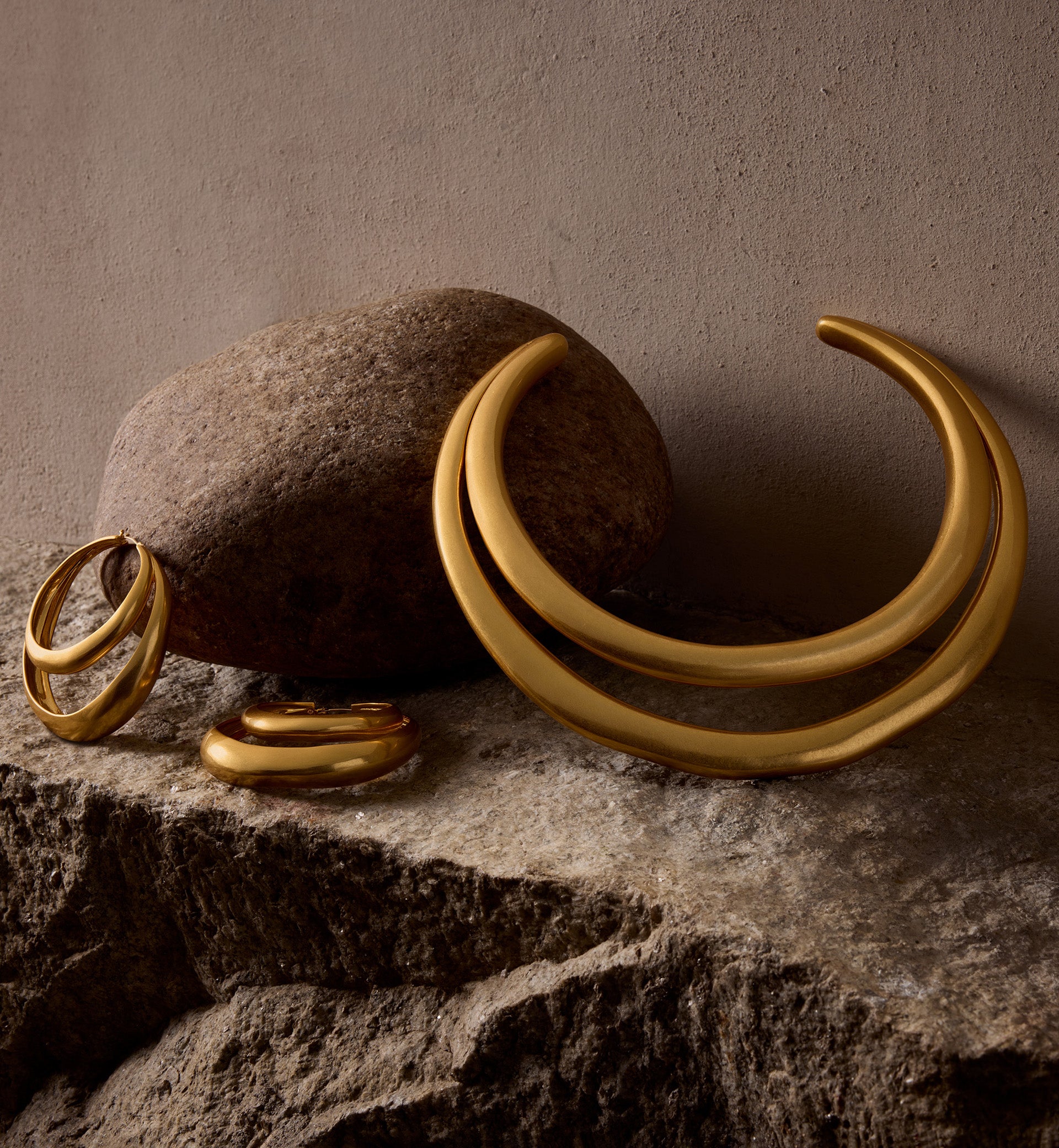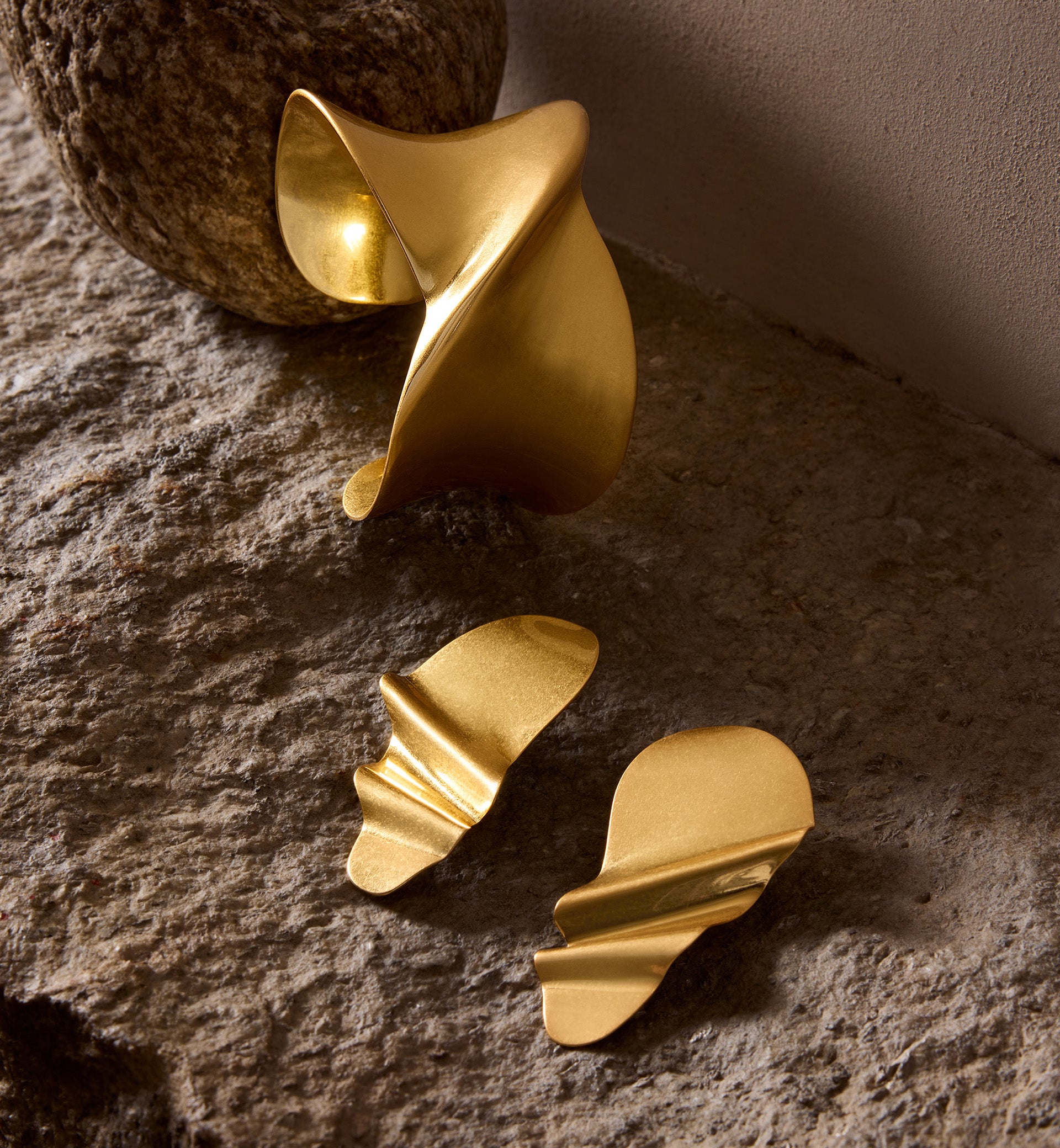 A new chapter unfolds — discover a collection of sculptural, statement pieces, each inspired by archival designs and finished in signature brushed gold for a refined, luminous touch.