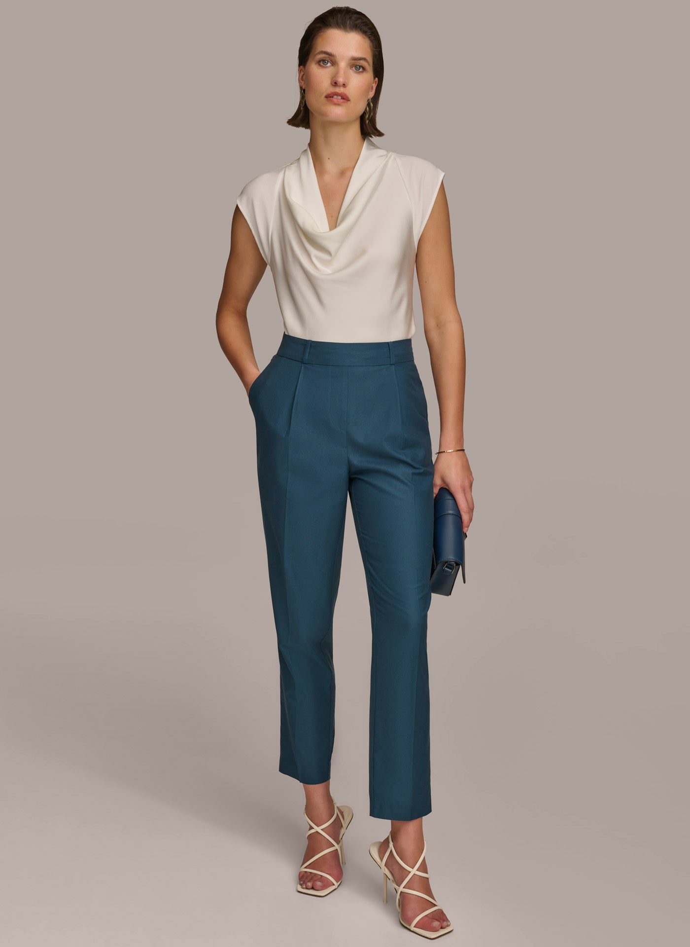 A quintessential wear-to-work trouser in an easy, pull-on design. This effortless style features flattering pleats at the front and a comfortable elasticated waist.
