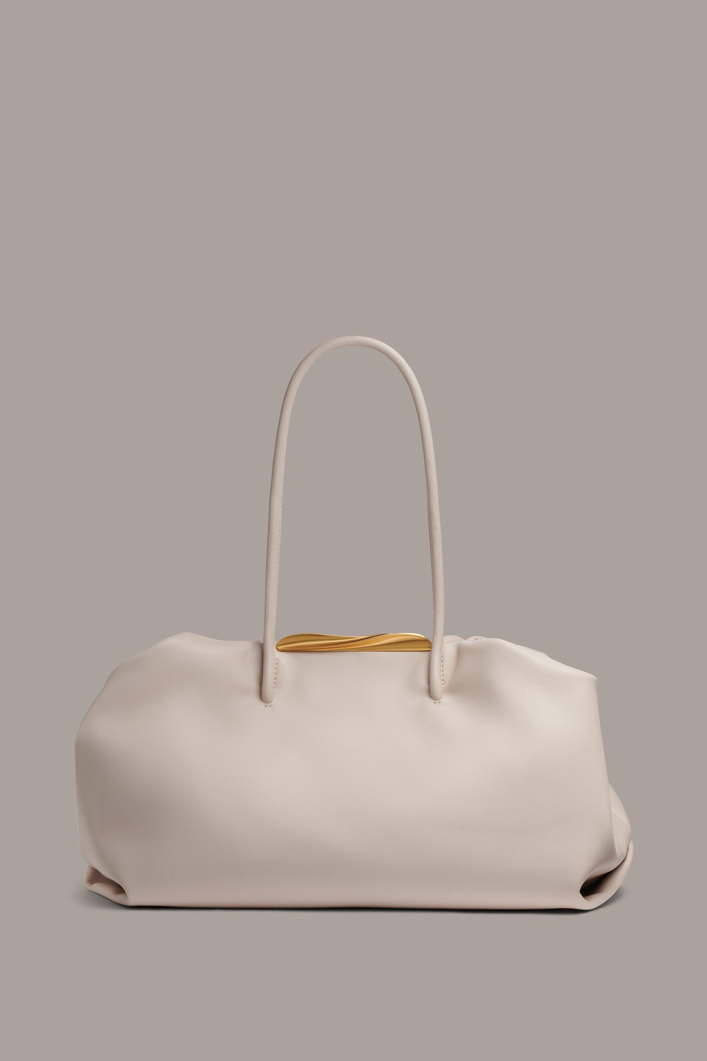 Sophisticated and spacious, the larger Poplin Satchel from Donna Karan combines sculptural form with elegant style, making a chic statement.