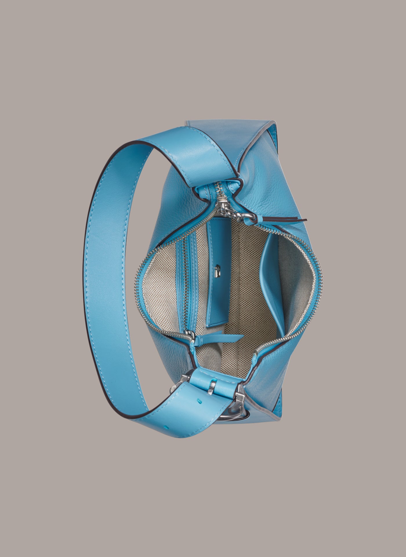 - Hardware buckle at strap