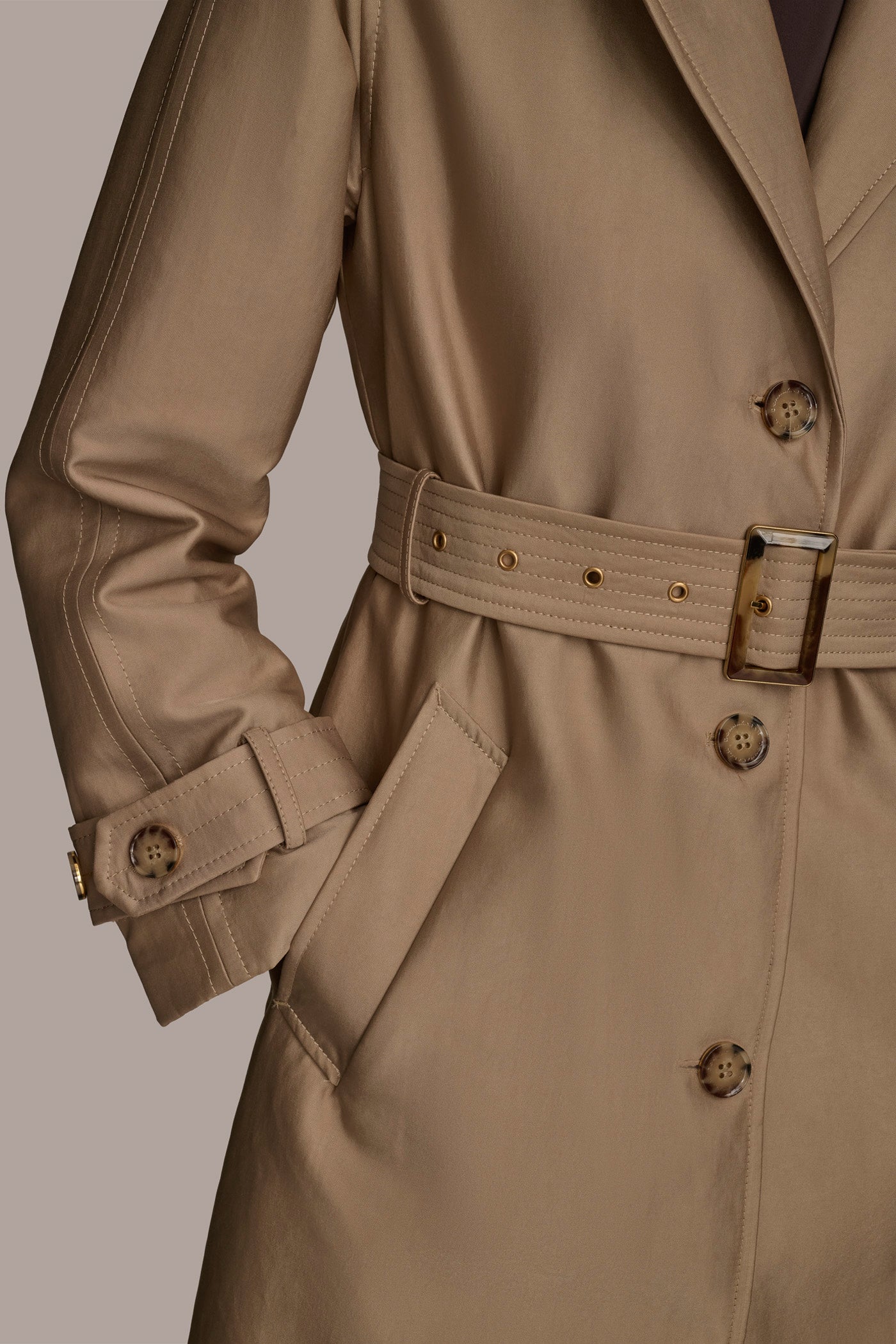 - Belted at waist
