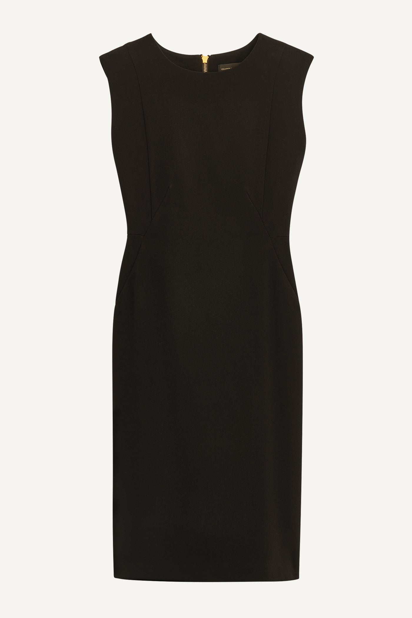 No 9-to-5 wardrobe is complete without this timeless dress. This style is cut in a classic sheath silhouette and features a high neckline, seam details, and a vent at the back for added movement.