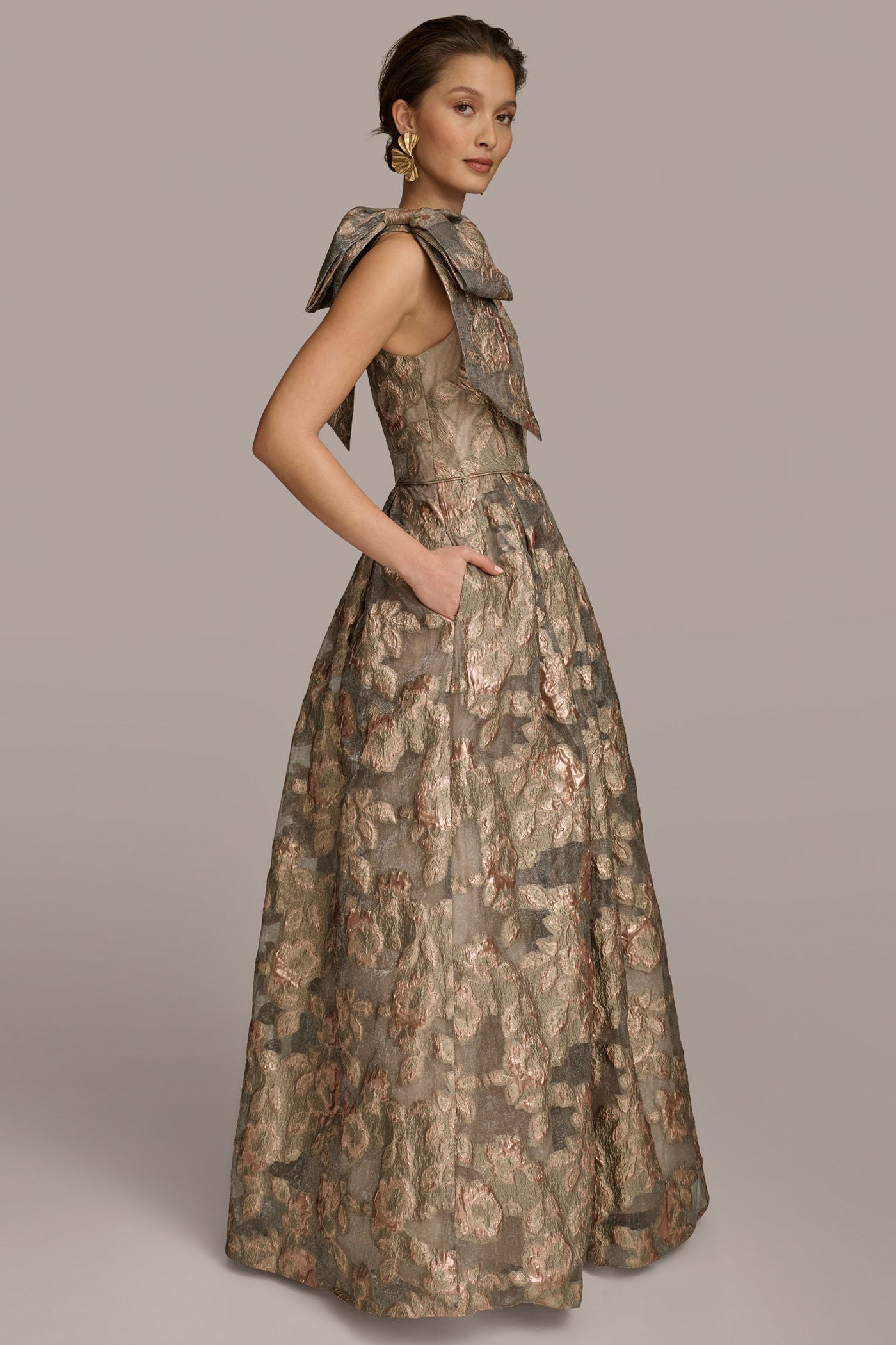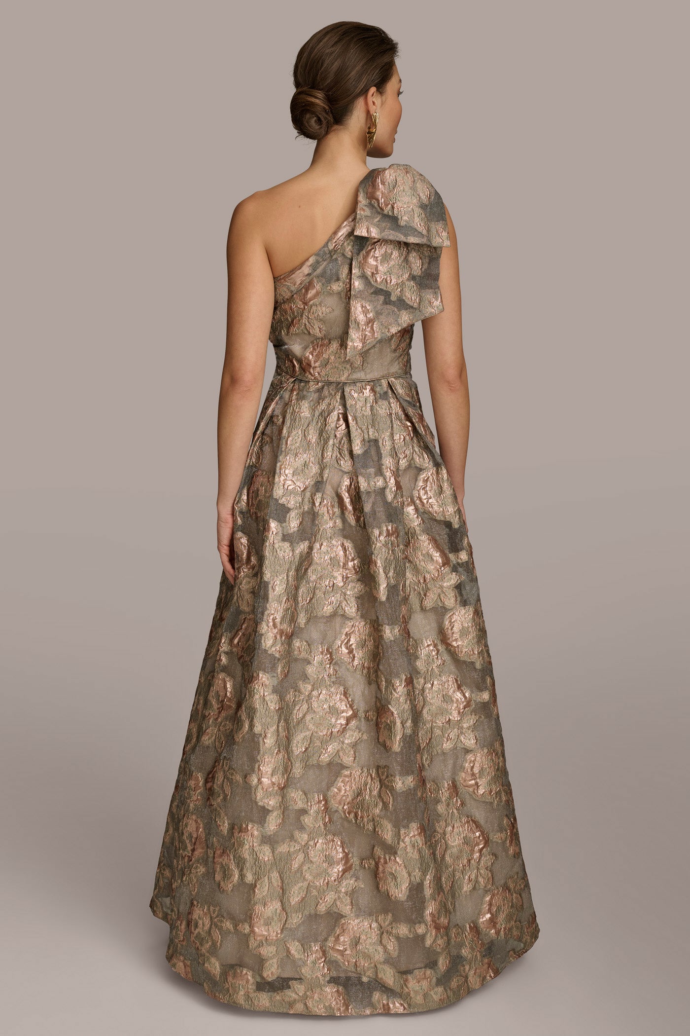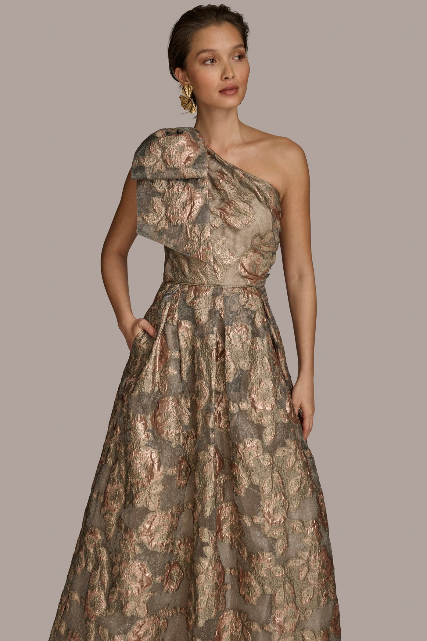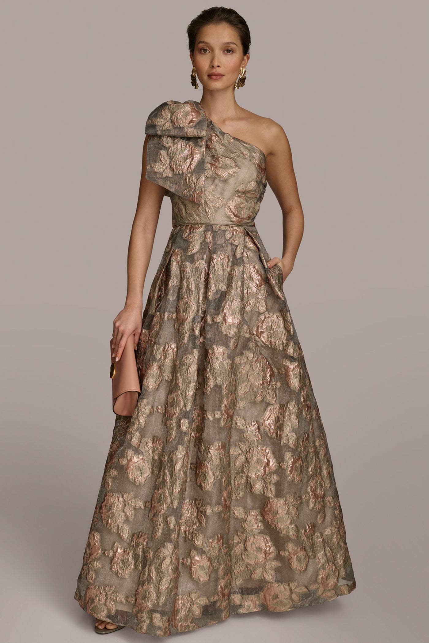 ONE SHOULDER BOW FLORAL BALL GOWN