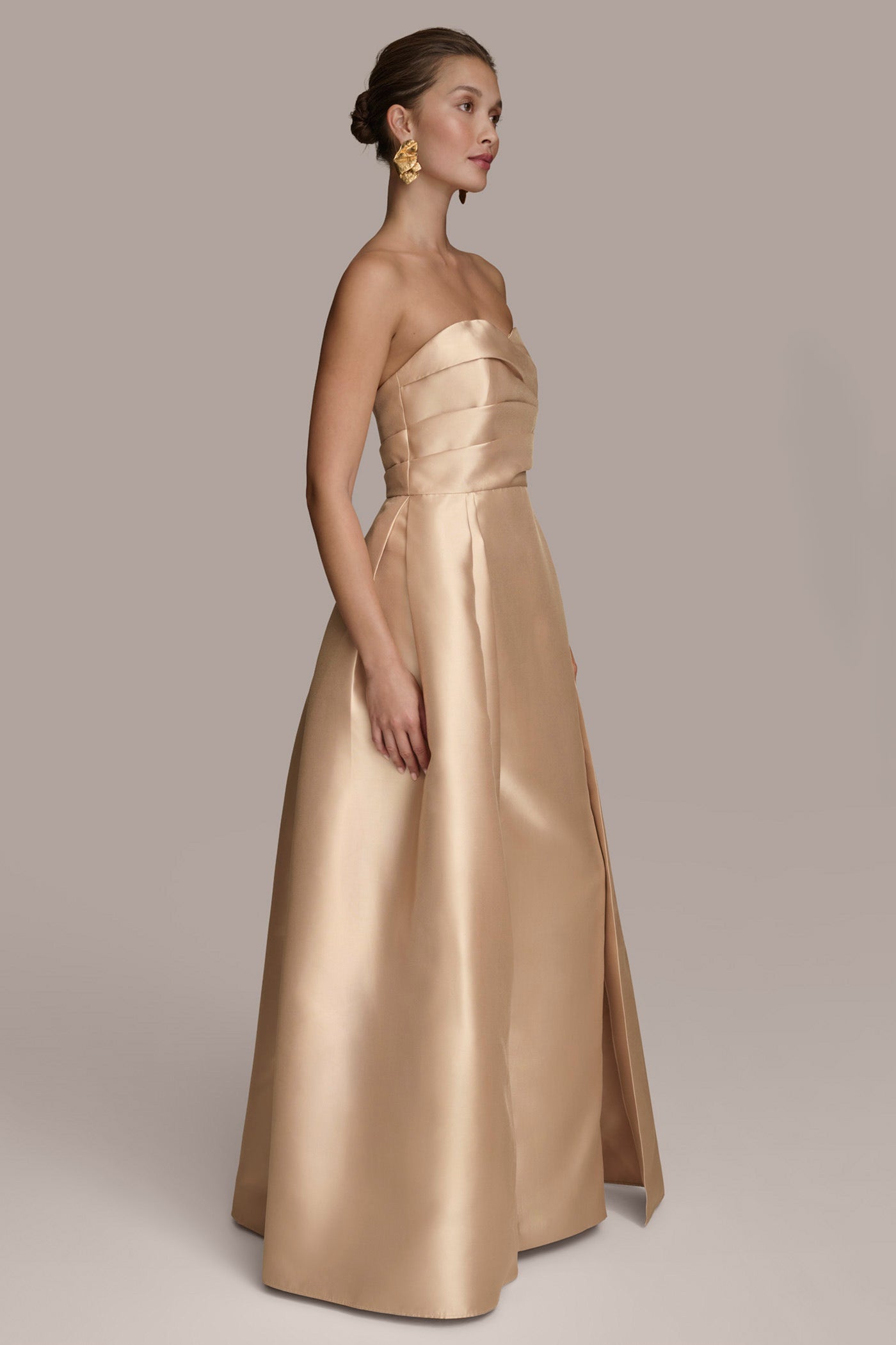 • Strapless Sweetheart Neck Ball Gown with Overskirt