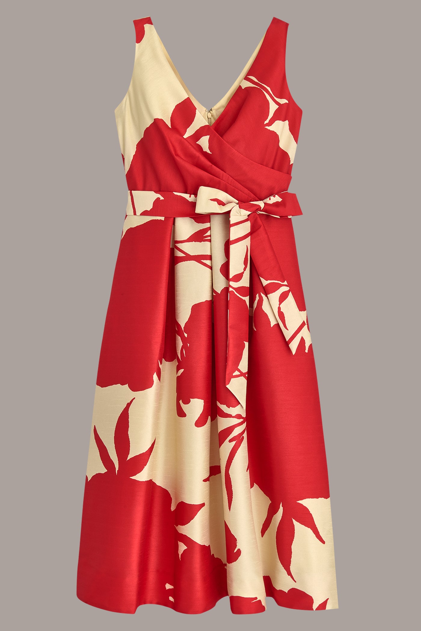 • Concealed back zip fastening with waist tie belt, slit waist pockets