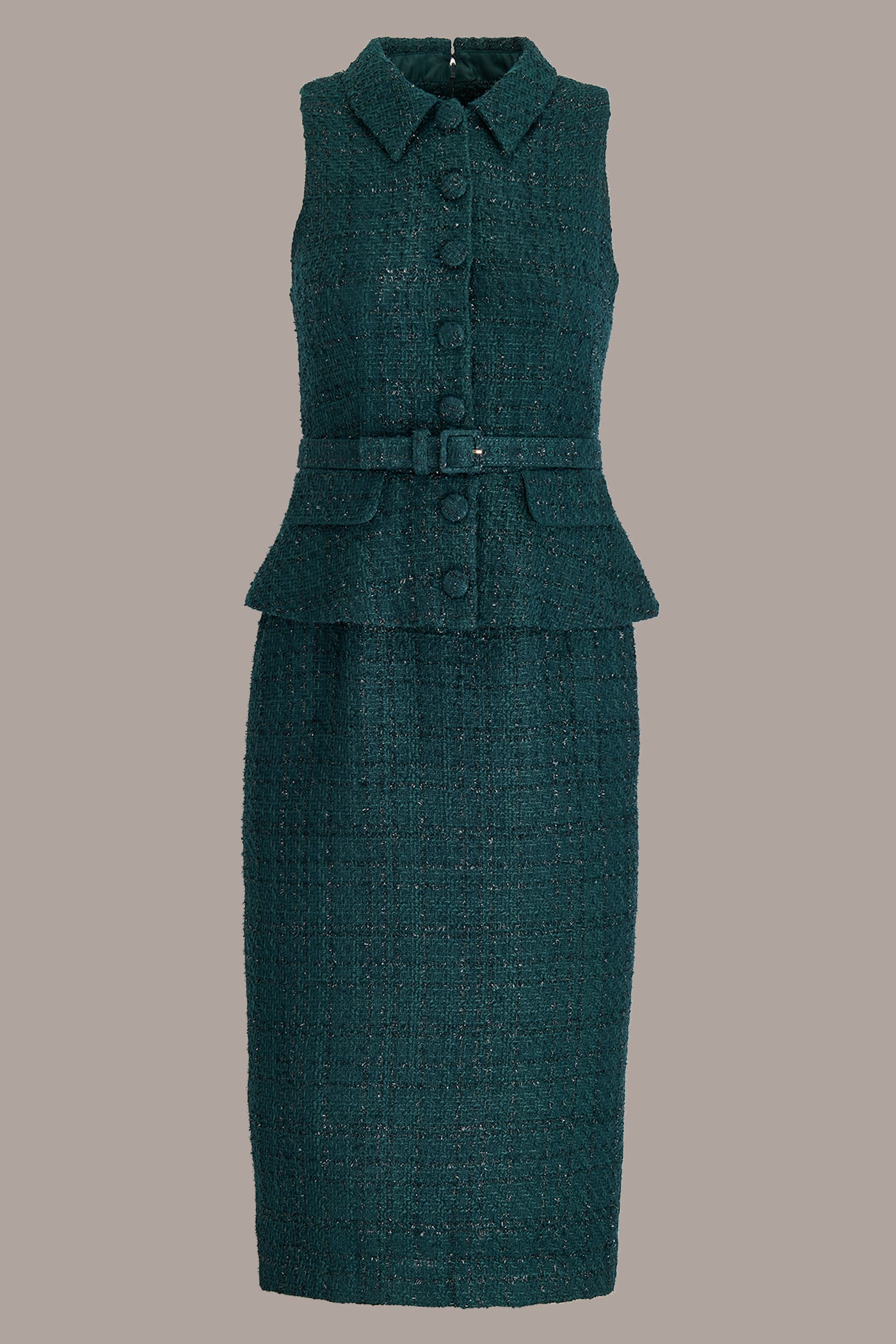 - Belted Sleeveless Point Collar Midi Peplum Suit Dress